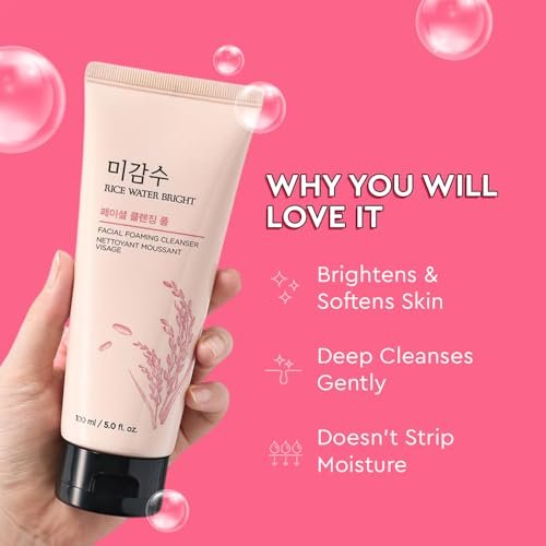 The Face Shop Rice Water Bright Foaming Face Wash 100ml | Face Wash for Glowing Skin | Cleanser for Uneven Skin Tone | Korean Skin Care, For Oily skin