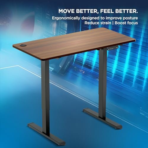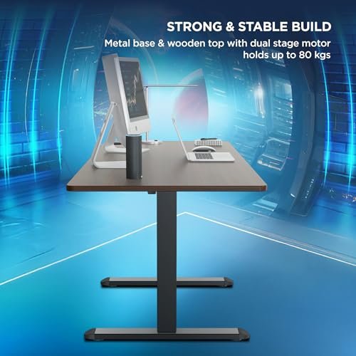 The Sleep Company – Adjustable Desk | Sit-Stand Ergonomic Table | Electric Height Adjustable Desk for Laptop | Work from Home Desk with Memory Preset Controller | 1600 x 700 Top | Wooden & Black