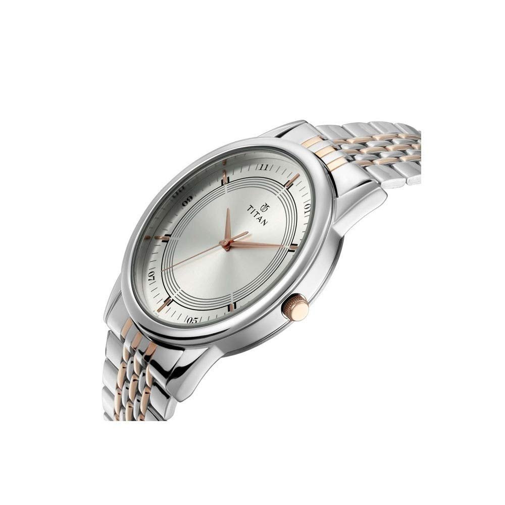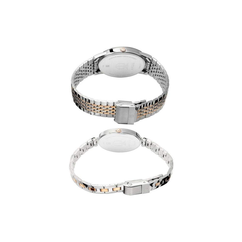 Titan Bandhan Quartz Analog Silver Dial Two Toned Silver and Rose Gold Stainless Steel Strap Watch for Couple – NT17732603KM01