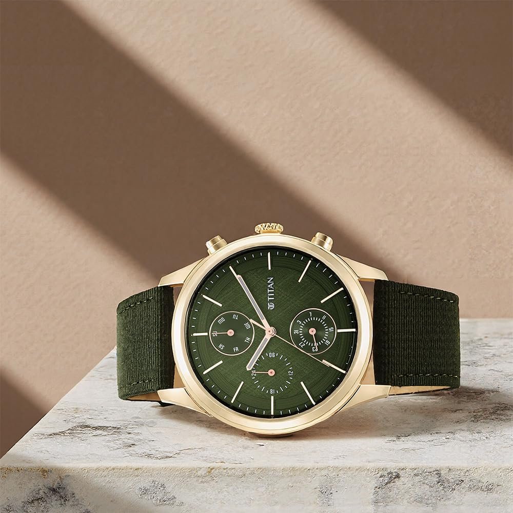 Titan Neo Splash Green Dial Quartz Analog with Date Fabric Strap Watch for Men-NS1805WP01