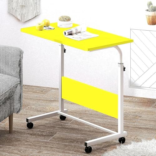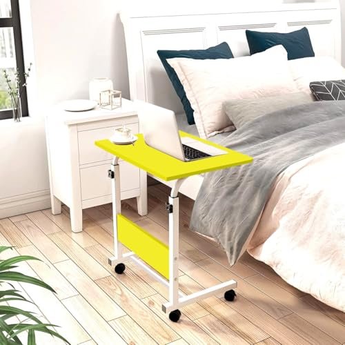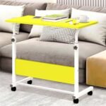 Torche Ironwood Multipurpose Height Adjustable Movable Table for Computer & Laptop Table with Wheels (Small-Yellow)