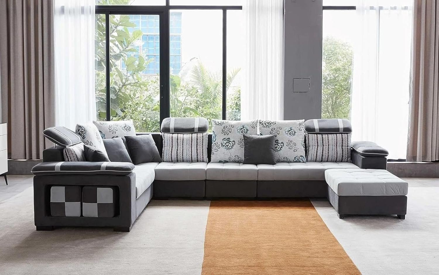 Torque Wood – Bristol 12 Seater Interchangeable U Shape Sofa Set for Living Room (Right Side, Dark Grey & Light Grey) | Sectional Sofa Couches Set with 4 Puffy | 1 Years Warranty