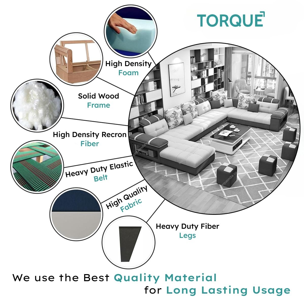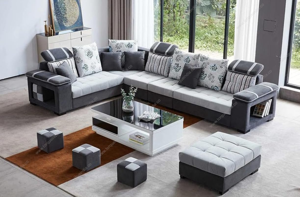 Be the first to review “Torque Wood – Bristol 12 Seater Interchangeable U Shape Sofa Set for Living Room (Right Side, Dark Grey & Light Grey) | Sectional Sofa Couches Set with 4 Puffy | 1 Years Warranty”