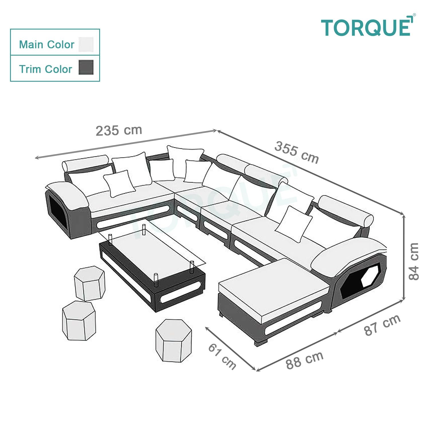 Be the first to review “Torque Wood Silvester 12 Seater Sofa Set for Living Room (Right Side, Dark Brown & Beige) | Interchangeable U Shape Sectional Sofa with Puffy and Stool for Guest Room”