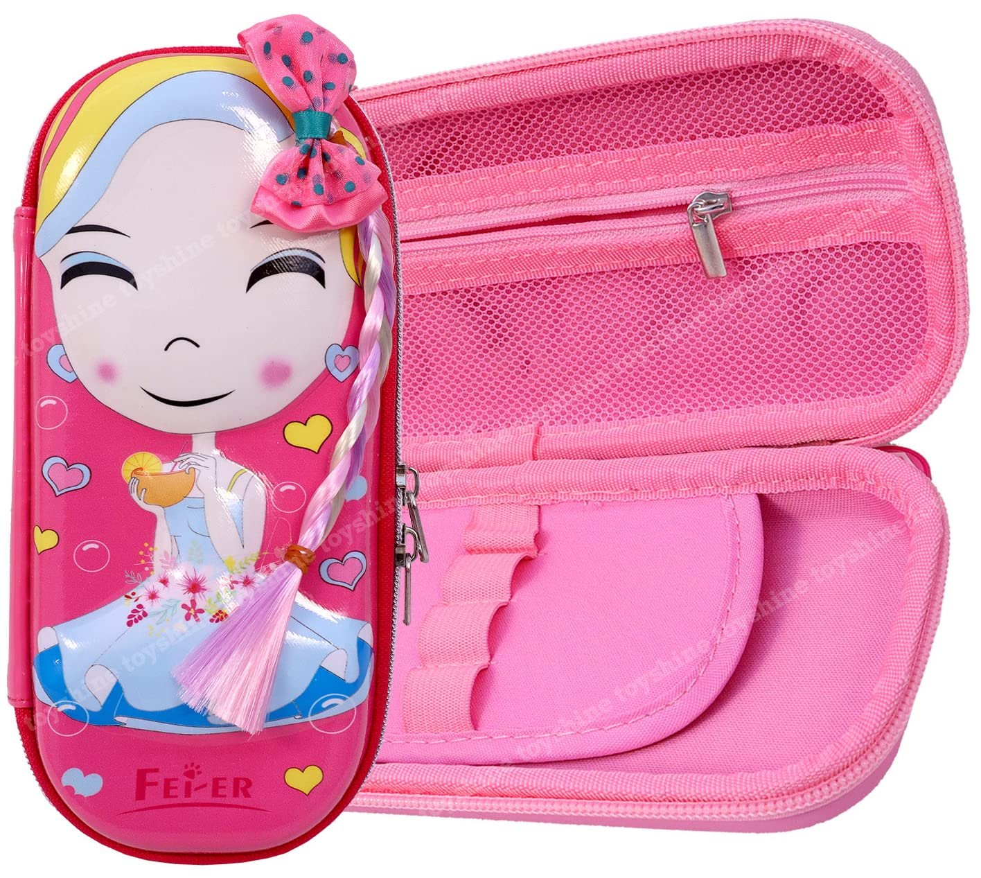Toyshine Ethylene Vinyl Acetate (Eva) Cute Girl Hardtop Pencil Case With Multiple Compartments – Kids School Supply Organizer Students Stationery Box – Girls Pen Pouch- Multi-Color, Multicolour