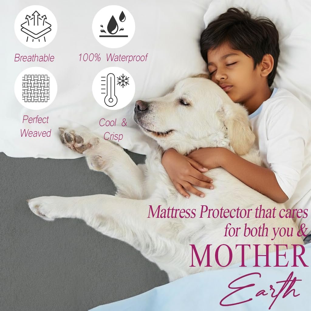 Trance 100% Waterproof Premium Cotton Feel Mattress Protector King Size 78×72 Inches | Breathable and Hypoallergenic Ultra Soft Fitted Bed Protector Cover (78″x72″ King, Grey)