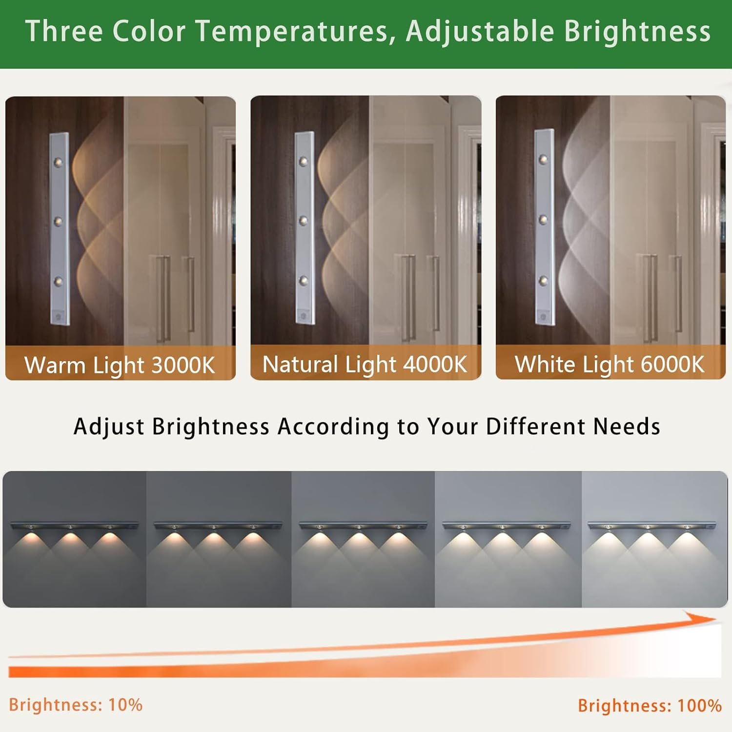 Under Cabinet Lighting, Wireless Motion Sensor Closet Lights, 3 Colors Dimmable Led Motion Sensor Light Bar, Rechargeable Under-Counter Light For Kitchen Closet