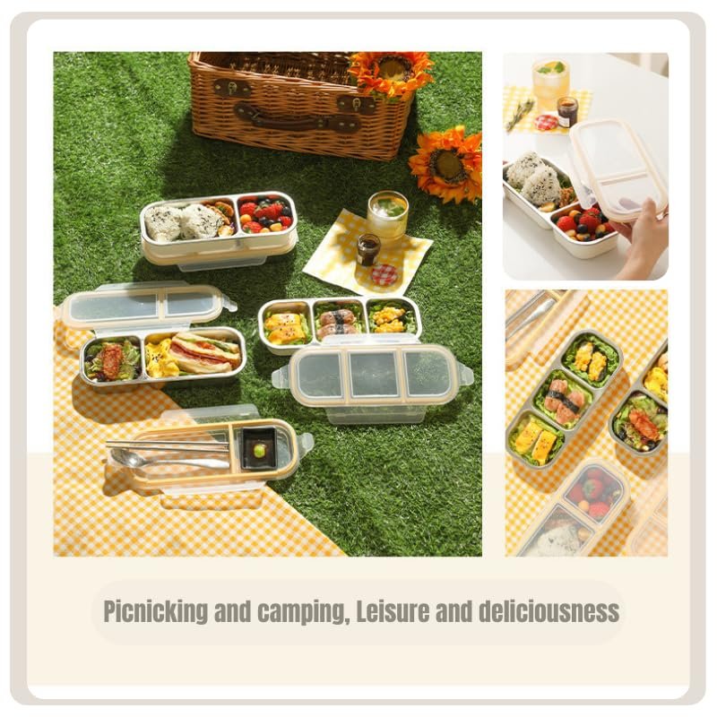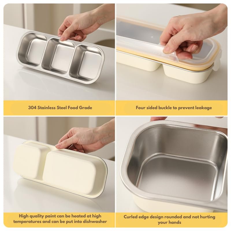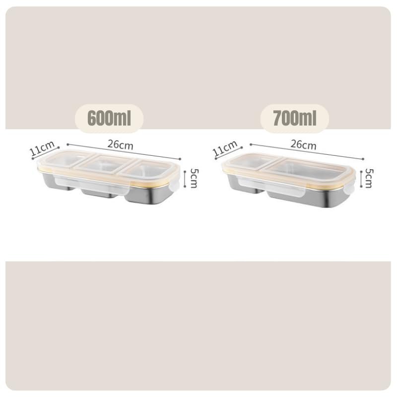 UniKart Stainless Steel Lunch Box 3 Compartment | 600ml Leak Proof Bento Box | Airtight Silicone Seal, Dishwasher Safe 304 Steel Slim Portable Tiffin | Office School Storage Container (Natural)