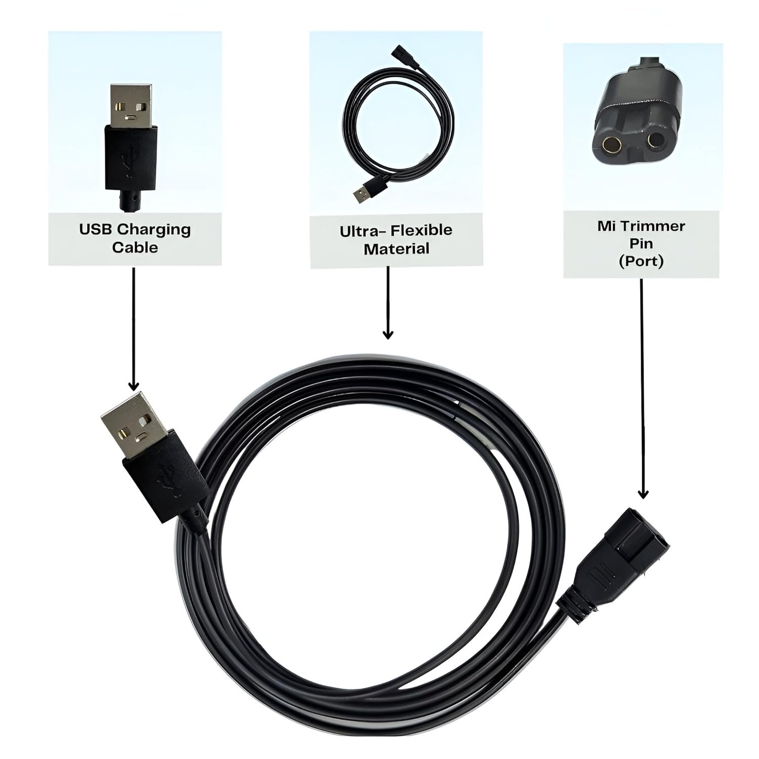 Upix USB Mi Trimmer Charging Cable 1 Meter (3.2 Feet), Compatible Only for Mi Trimmer, Shavers, Body Groomers – (Please Match Cable Port before Ordering, Check Images) (Works with 5V USB Adapter)