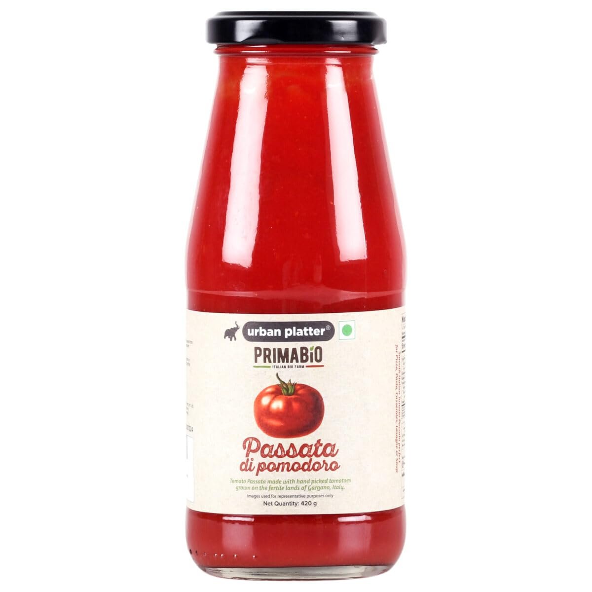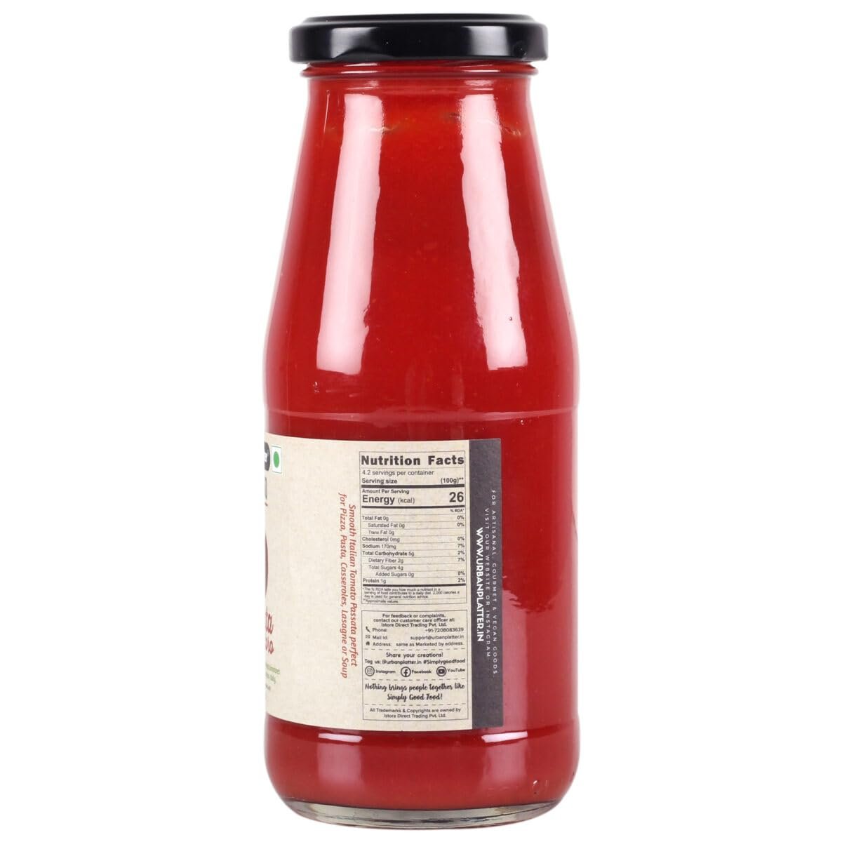 Urban Platter Italian Tomato Puree, 420 grams [Grown and Processed on The Fertile Lands of Gargano, Italy | Preservative Free | Jain Friendly, Tomato Sauce for Pasta, Pizza, Lasagne]