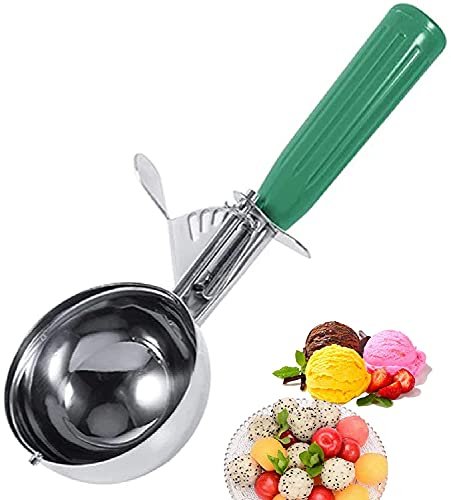 VDNSI Economical Stainless Steel Ice Cream Scooper Fruit Scoop with Multi Colour Handle Cookie Scoop Set, Stainless Steel Ice Cream Scooper with Trigger Release