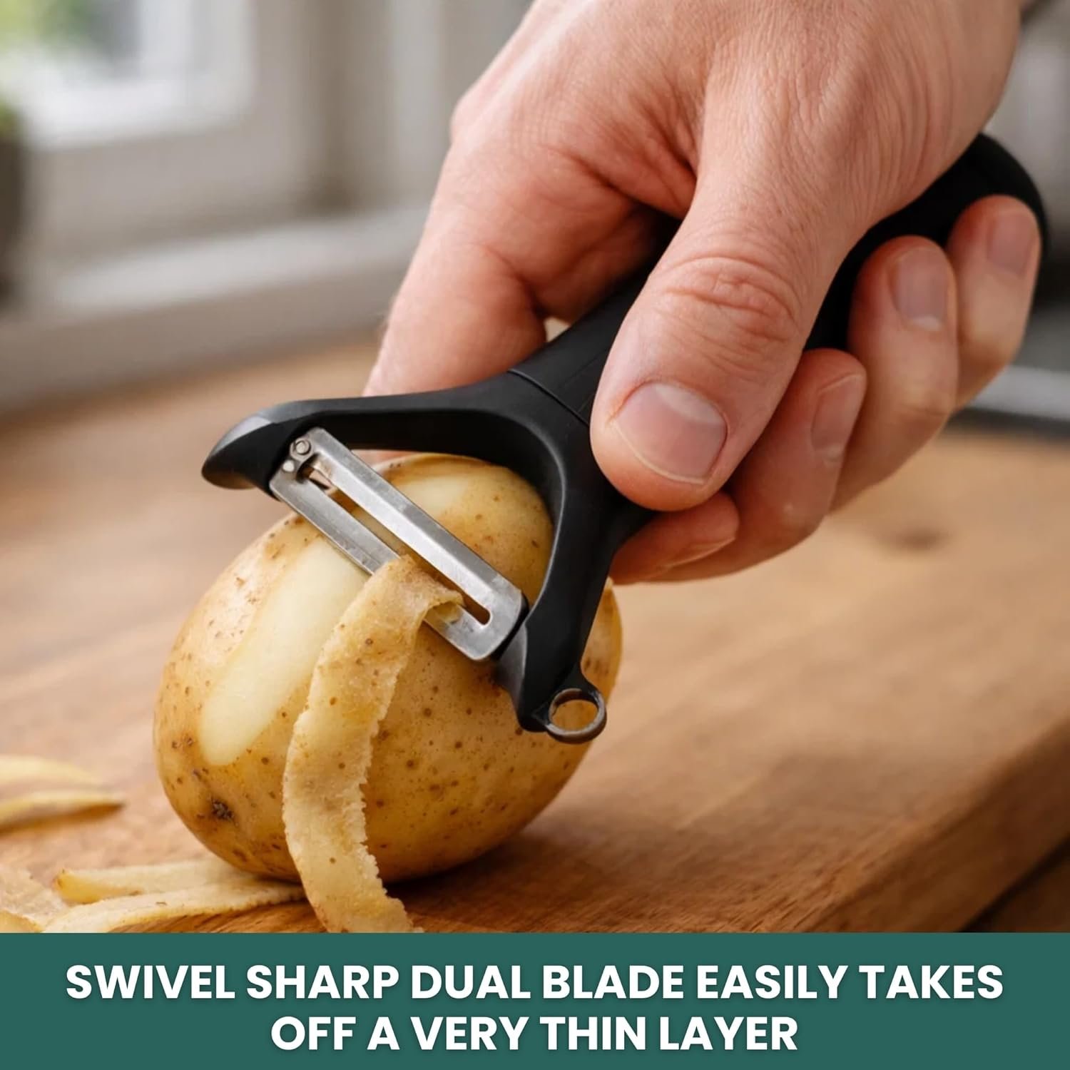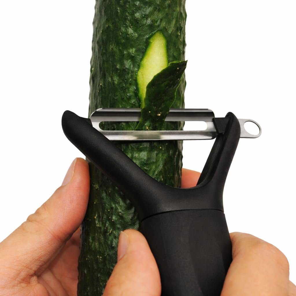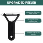 Vegetable and fruit peeler, stainless steel sharp blade, potato, apple, carrot, cucumber peeler for kitchen, heavy duty ergonomic handle, dishwasher safe (Matt Finish – Black) 1 Year Warranty
