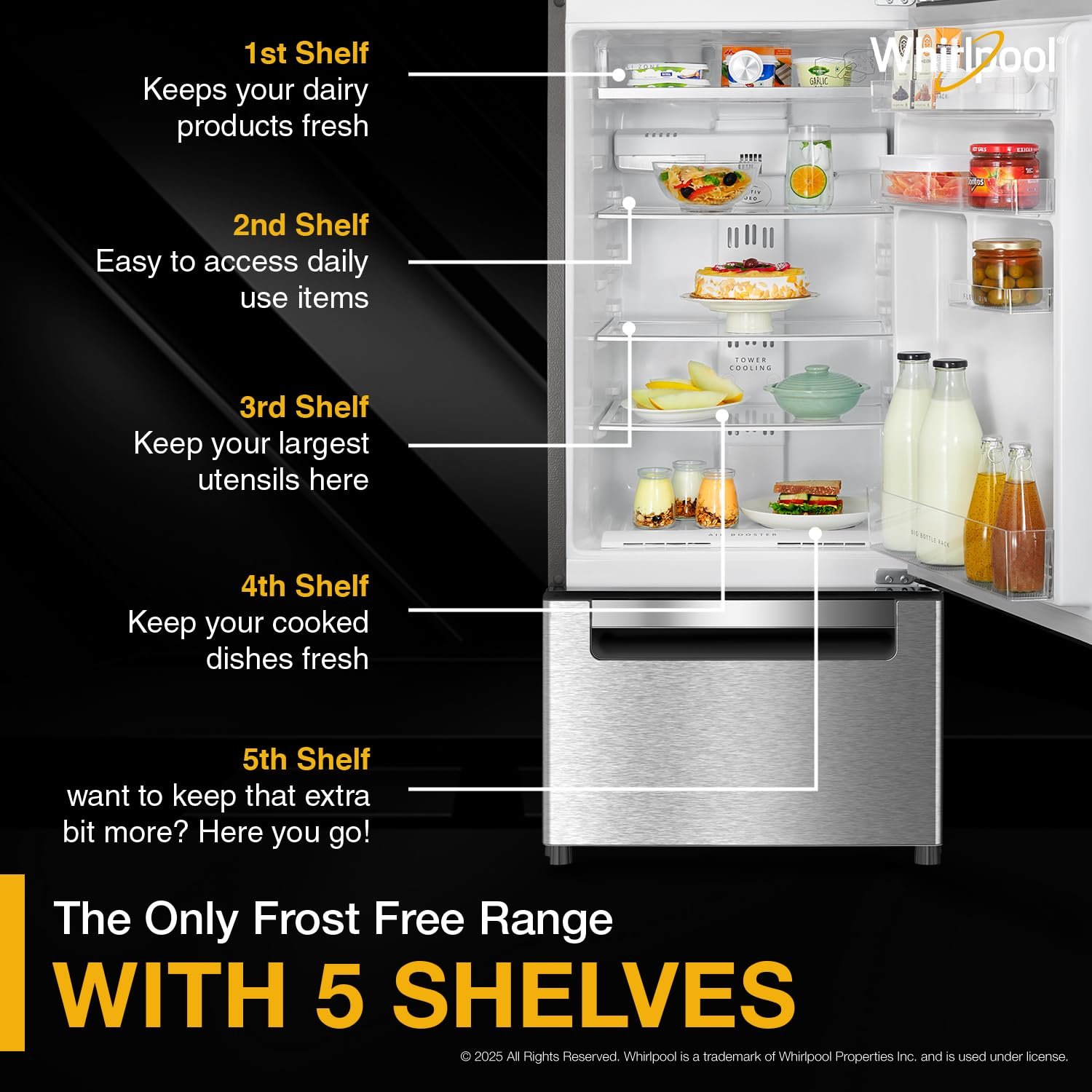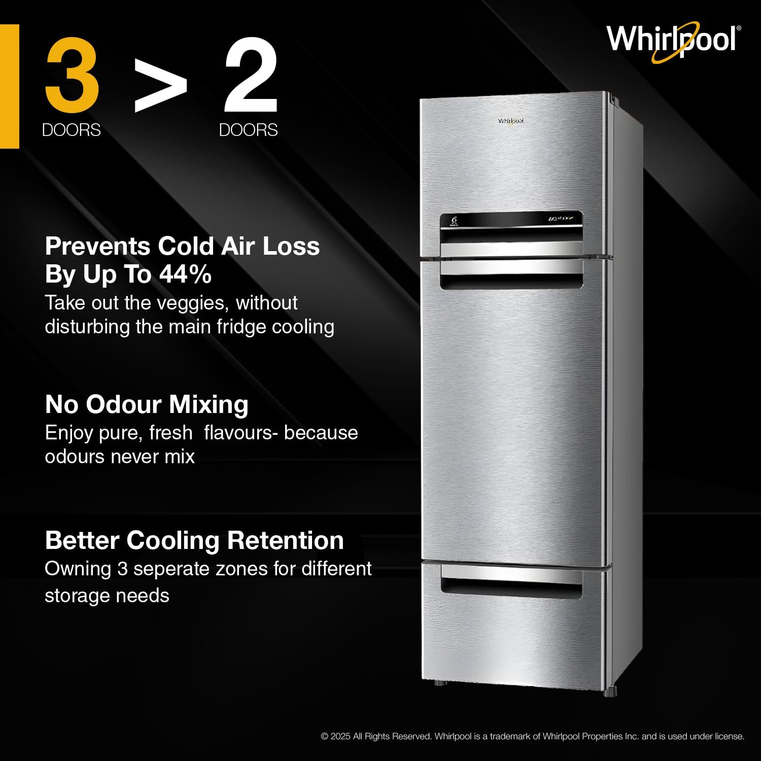 Whirlpool 215 L Frost Free Triple-Door Refrigerator | Zeolite Technology | Microblock Technology [FP 223D PROTTON ROY RADIANT STEEL(Z), Up to 44% Reduction in Cold Air Loss*]