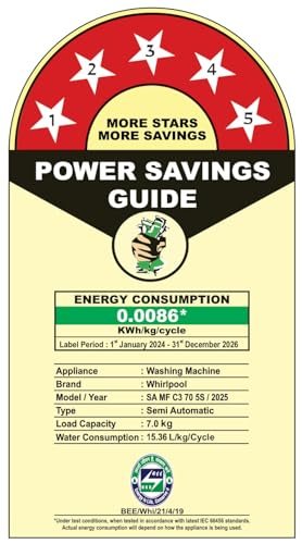 Whirlpool 7.0 Kg 5 Star MAGIC CLEAN Semi-Automatic Top Loading Washing Machine (MAGIC CLEAN RYL SRS 7.0 GREY DAZZLE (5YR), 4 Year Comprehensive Warranty, 1400 RPM Motor, 5 Year Motor Warranty)