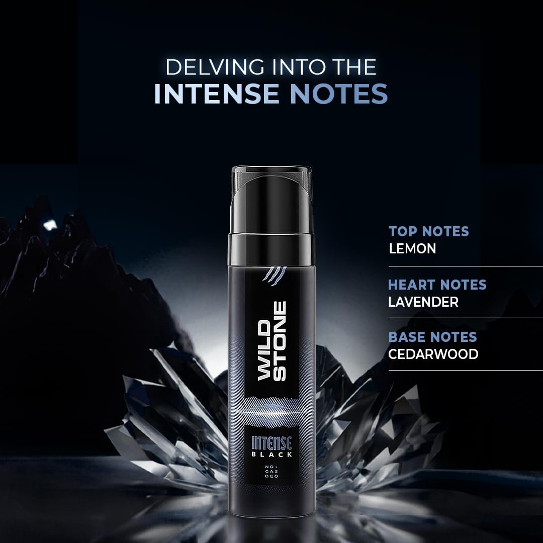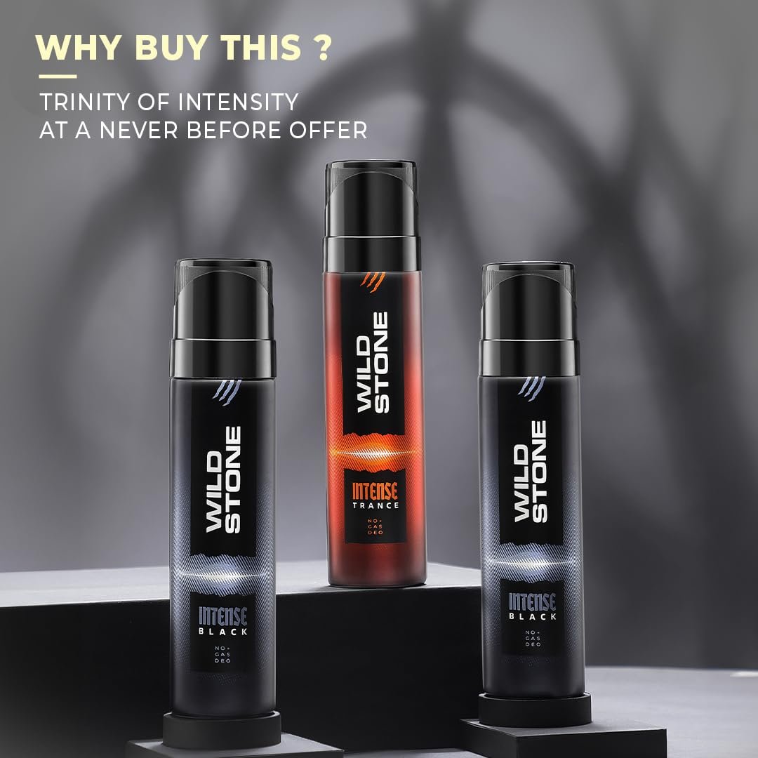 Wild Stone Intense Black and Trance No Gas Deodorant Gift Set for Men, Pack of 3 (150ml each) | Long Lasting Fragrance | Gift Set for Him|Body Spray for men