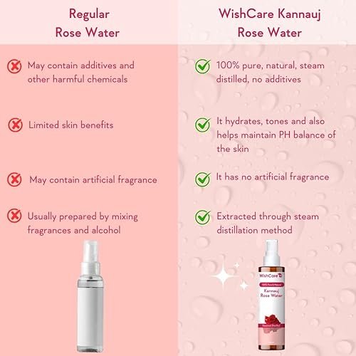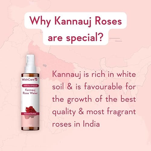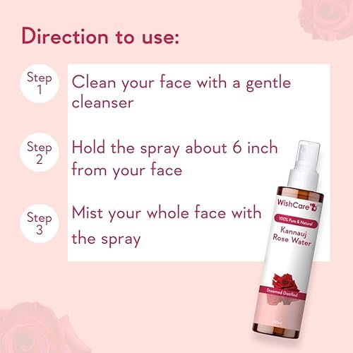 WishCare 100% Pure & Natural Rose Water For Face, Skin & Hair – Rose Water Toner for Glowing Skin – Free from Paraben & Alcohol 200ml