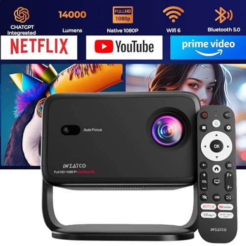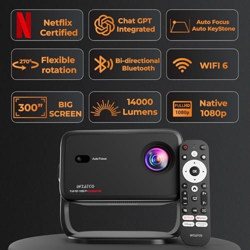 WZATCO Yuva Vibe, Smart Home Projector 4k Ultra HD, Native 1080P Fully Automatic, HDMI ARC, WiFi 6 & BT, Screen Mirroring, Portable Room Cinema, Black