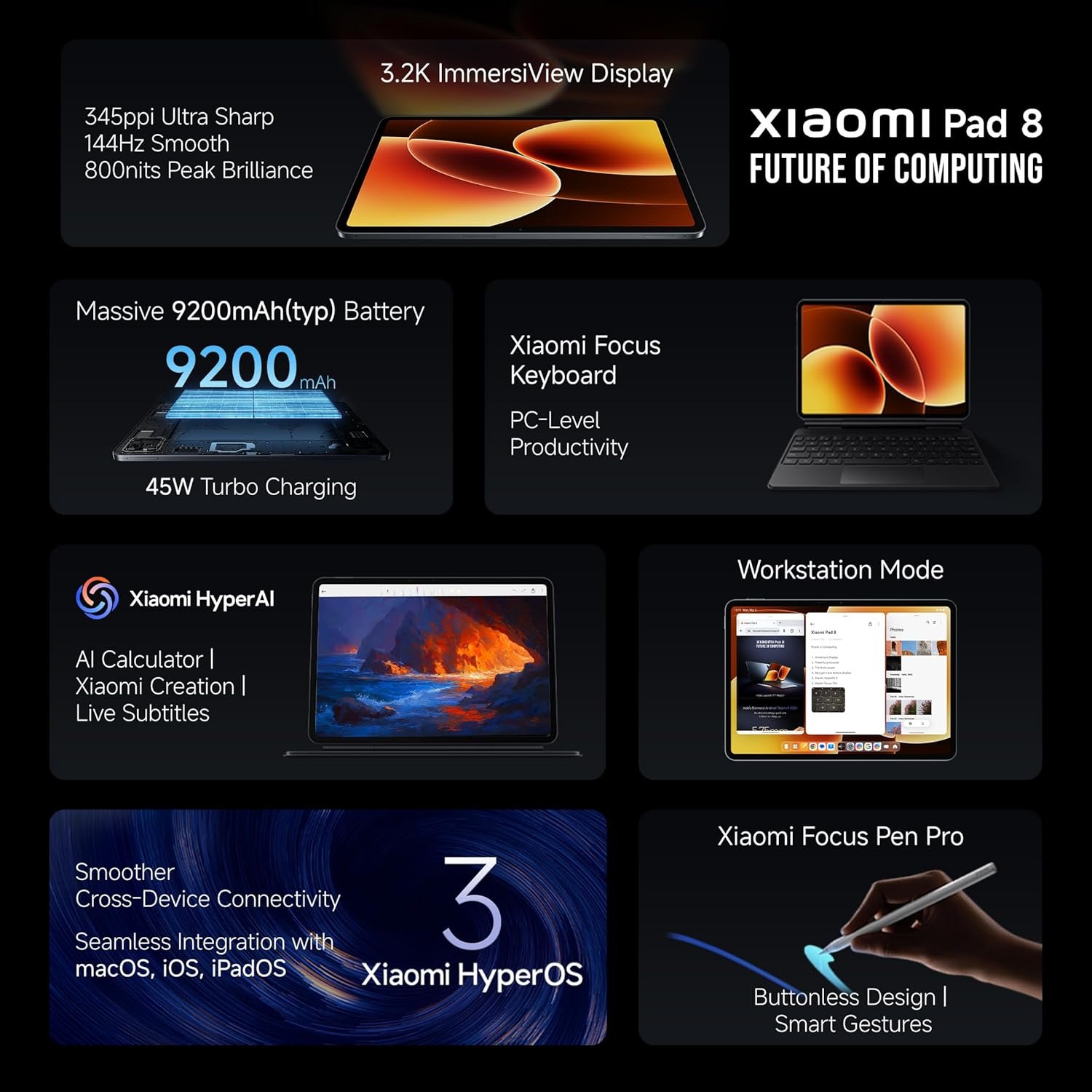 XIAOMI Pad 8 Creator’s Edition with Focus Pen Pro | Flagship Snapdragon 8s Gen 4 |11.2″ 3.2K | 12GB, 256GB | Ultra Slim Metal Design | 9200mAh Battery HyperAI | Wi-Fi 7 | Graphite Grey